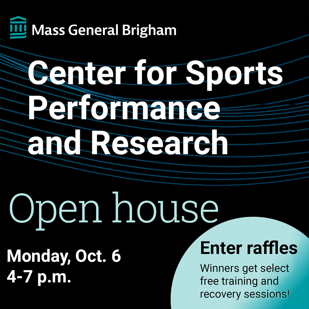 Join us on Monday, October 6 from 4–7 PM for an exclusive Open House at the Mass General Brigham Center for Sports Performance and Research—where science meets peak athletic performance.