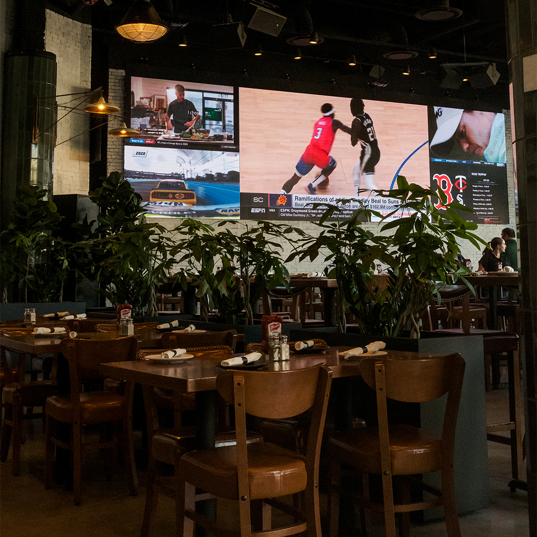 Citizen Crust’s Private Dining room is available for private parties, business functions, and celebrations. It’s the ideal location for your next event and can comfortably accommodate 10 – 40 guests. Guests may have the room for four hours. The Private room is fitted with large wooden tables and floor to ceiling glass windows with built in privacy shades, allowing semi-private or fully private dining experiences. Two televisions hang from the wall to accommodate any AV needs. Other arrangements may be made upon request.