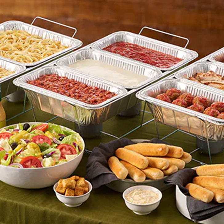 Catering everyone will love, with convenient delivery and setup, starting at $12 per person.* Bundles designed to create the perfect combination for any occasion. Every catering delivery order comes with grated cheese, serving and eating utensils, table covers, plates, napkins and after dinner mints. Chafing dish, rack, and fuel are available upon request.
