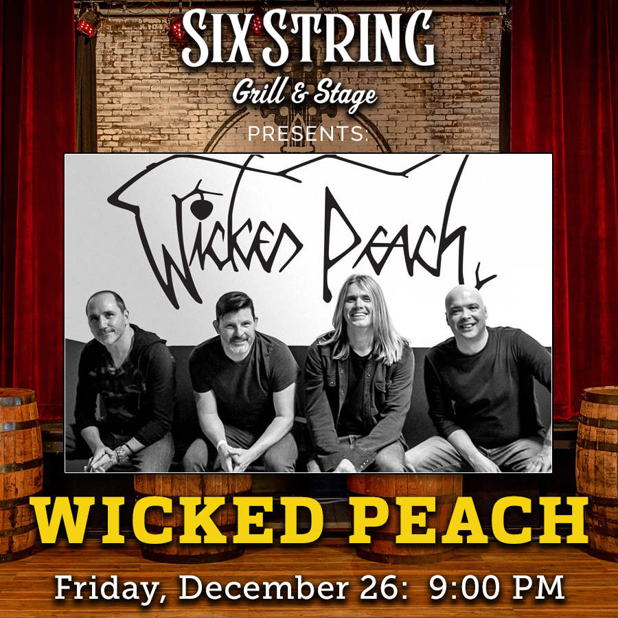 Friday, December 26, 2025: 9:00 PM Join us for a live set from Wicked Peach on the Six String stage! Cover charge and 21+ with valid ID starting at 8:30 PM. Stay updated with the latest news