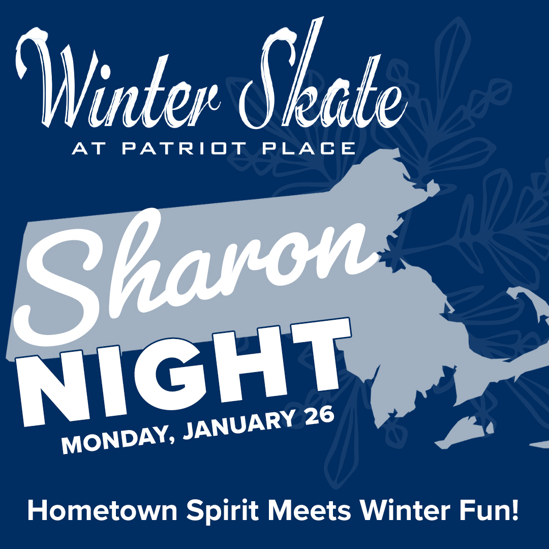 Get ready to show your Sharon pride! Wear your Maroon and Gold Sharon gear to Winter Skate and receive FREE admission for a future visit! Plus, the first (20) guests representing their town will receive a special thank you from Patriot Place.