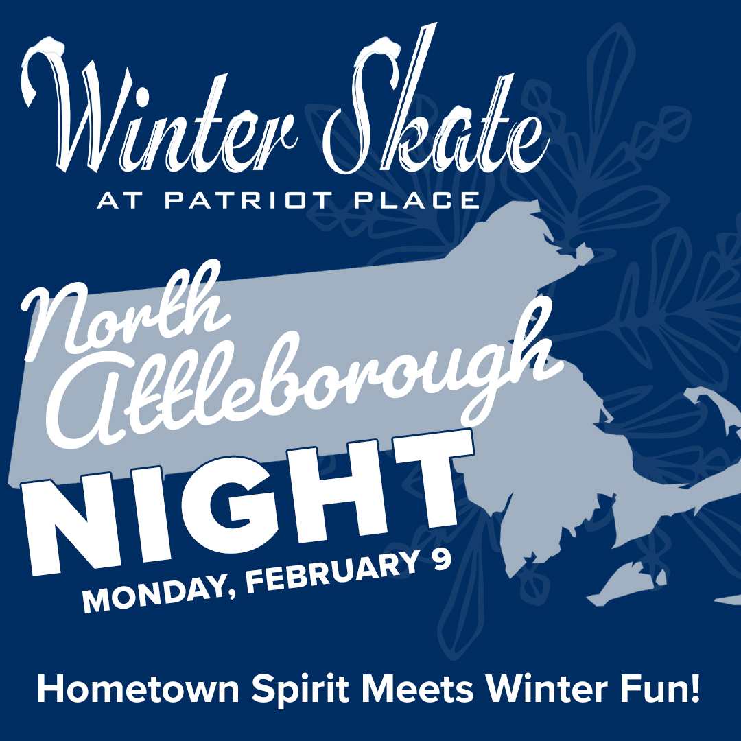 Get ready to show your North Attleborough pride! Wear your Red and White North Attleborough gear to Winter Skate and receive FREE admission for a future visit! Plus, the first (20) guests representing their town will receive a special thank you from Patriot Place.