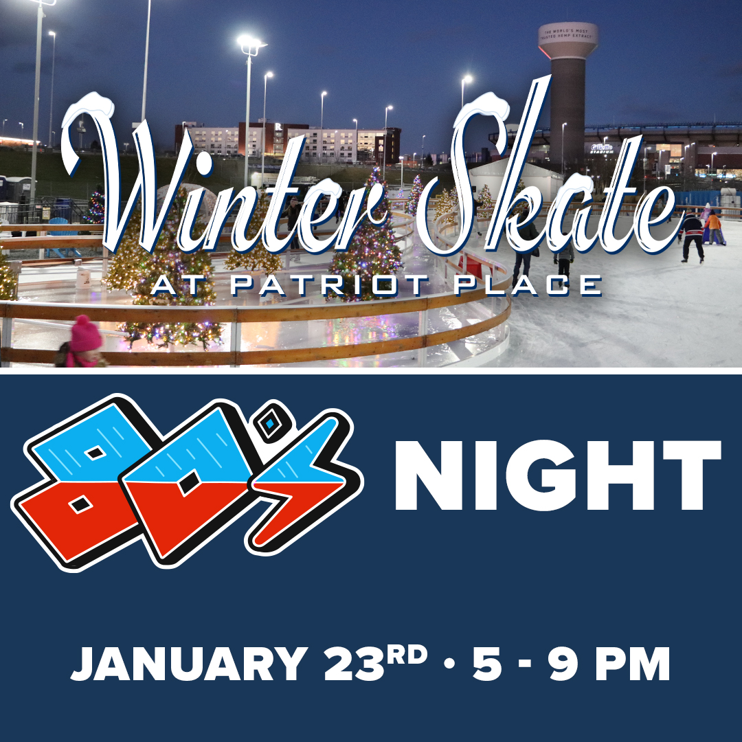 ๐ Friday, January 23, 2026 โฐ 5:00 PM - 9:00 PM ๐ Winter Skate at Patriot Place Step into the era of big hair, bold colors, and iconic tunes! The 80s are back