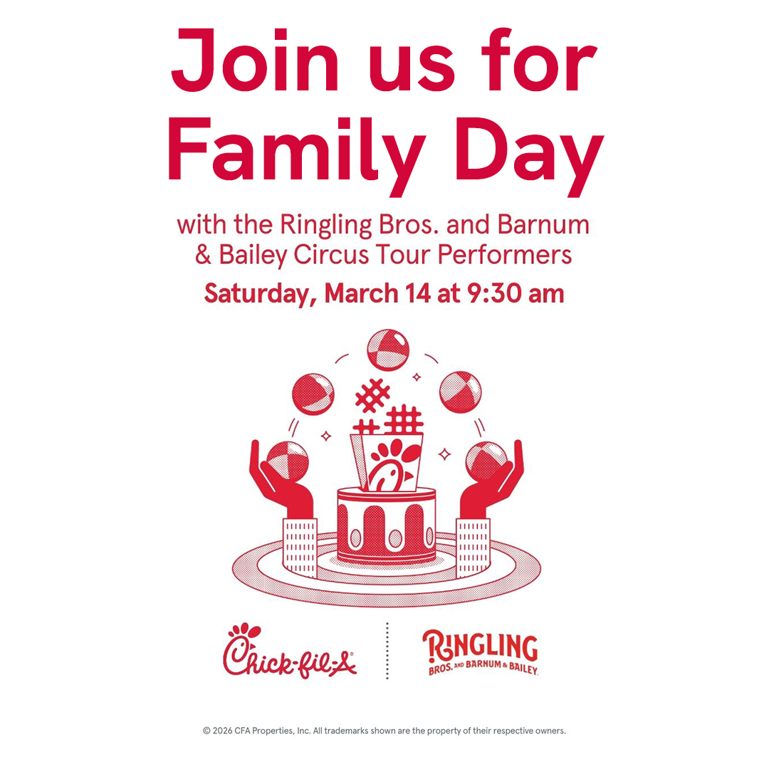 Saturday, March 14, 2026: 9:30 AM Bailey Circuit and members of the Ringling Hype Crew will be at Chick-fil-A Foxborough on Saturday, March 14 at 9:30 AM! Enjoy your breakfast favorites