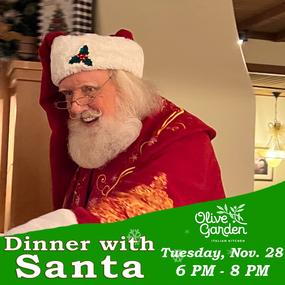 Santa is making his list and checking it twice! Make your reservation at Olive Garden on Tuesday, November 28 between 6:00 PM and 8:00 PM to find out if you’ve been naughty or nice at Dinner with Santa.