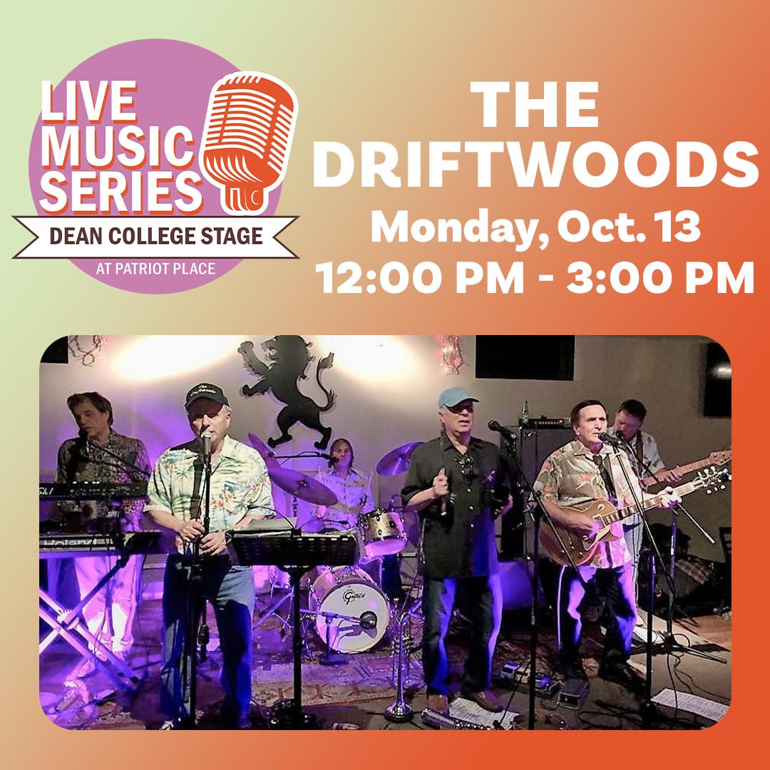 Welcome to the Live Music Series on the Dean College Stage at Patriot Place! Enjoy an afternoon of great tunes and good vibes with a live performance by The Driftwoods from 12 PM – 3 PM.