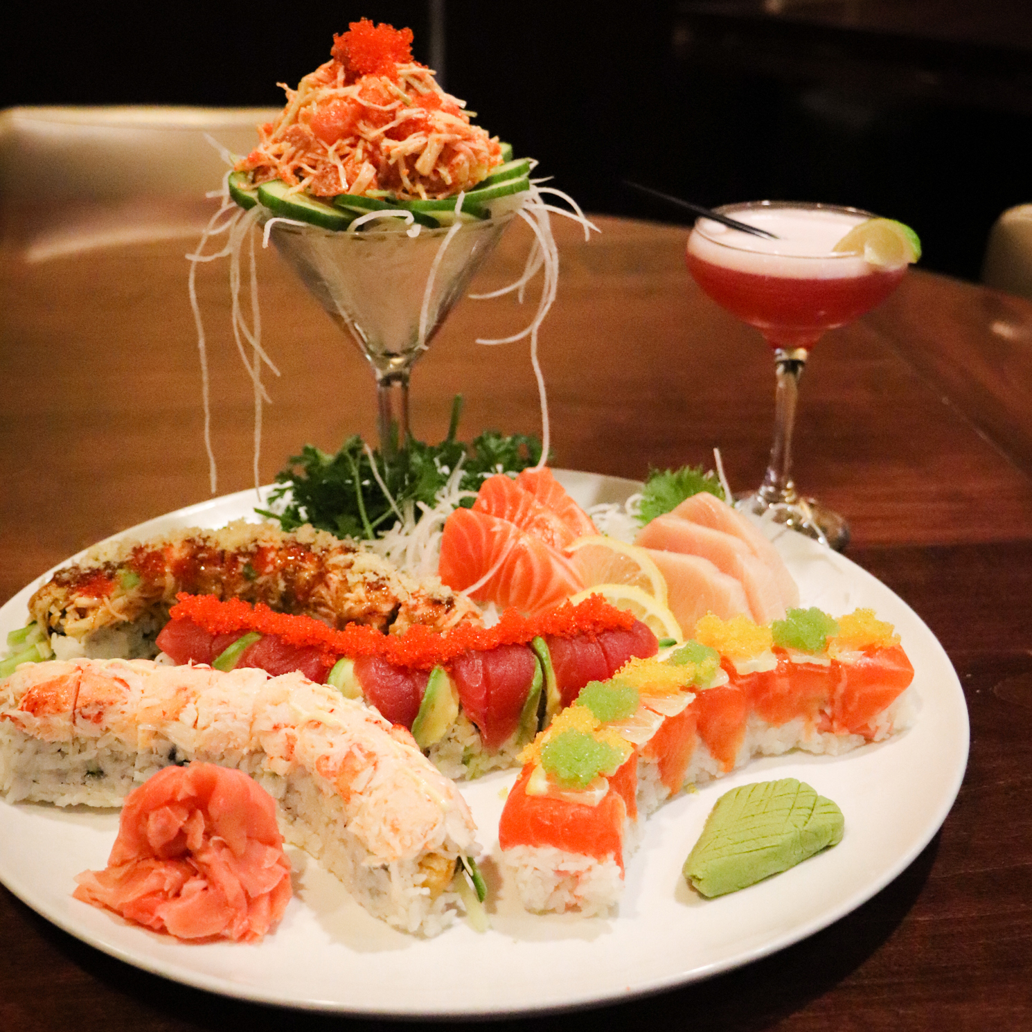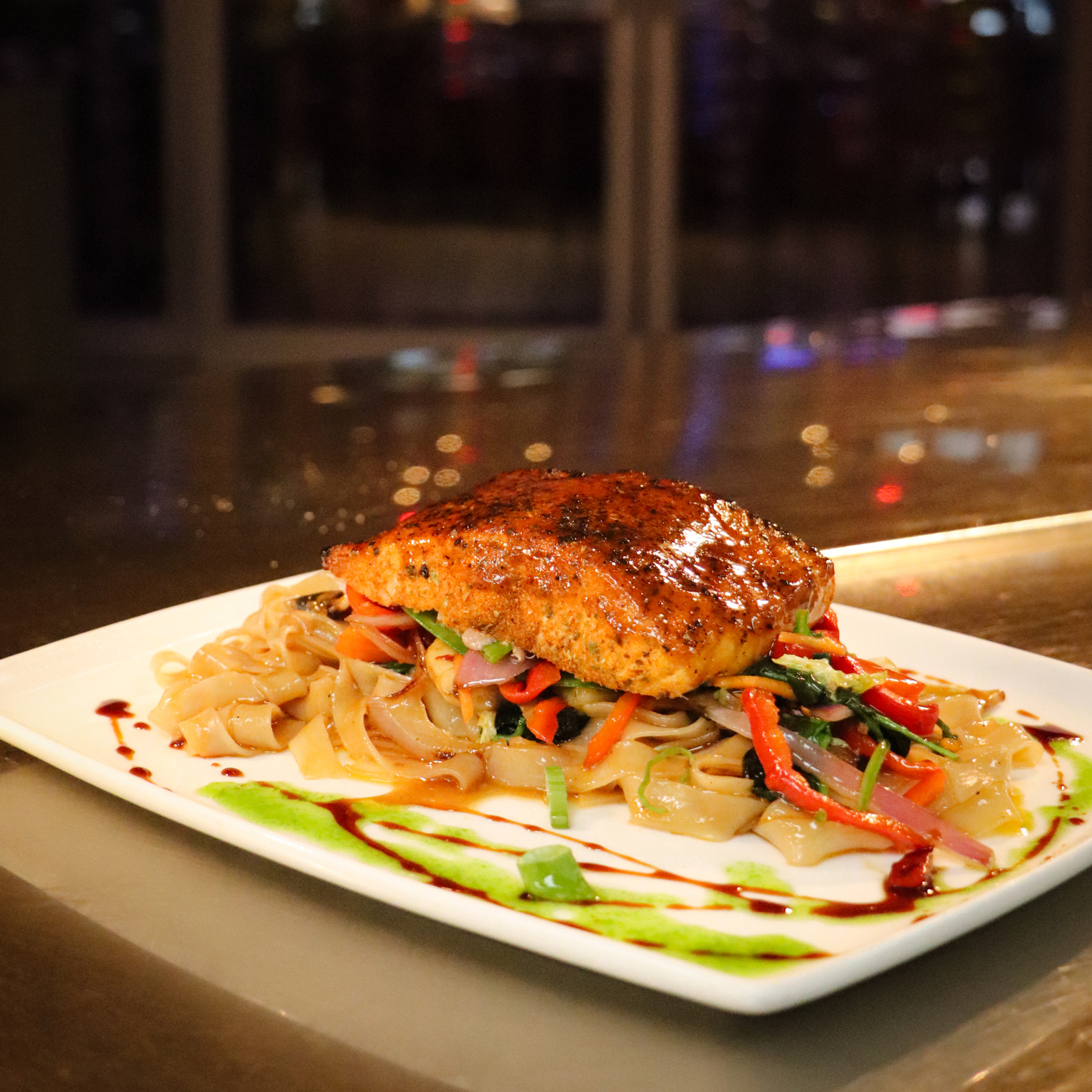 The menu at Skipjack’s is diverse and offers a range of seafood dishes, from New England classics like Clam Chowder and Fish & Chips to the internationally inspired such as Thai Salmon and Swordfish Au Poivre. A staple at Skipjack’s is the Ginger Sea Bass. The ginger soy marinade flows throughout the fish to achieve a light caramelization on the outside that melts in your mouth and is served with fresh stir-fry vegetables and white rice. No visit is complete without sampling their innovative sushi rolls. Master Sushi Chef Otto has dedicated his life to perfecting the art of sushi making. Otto’s original sushi rolls are not only beautifully crafted but bursting with flavor. Some of his most loyal fans include former Patriots players (and current coach) Jerod Mayo and Stephen Gostkowski. Each plate is beautifully arranged, and the vibrant colors make for a visual feast.