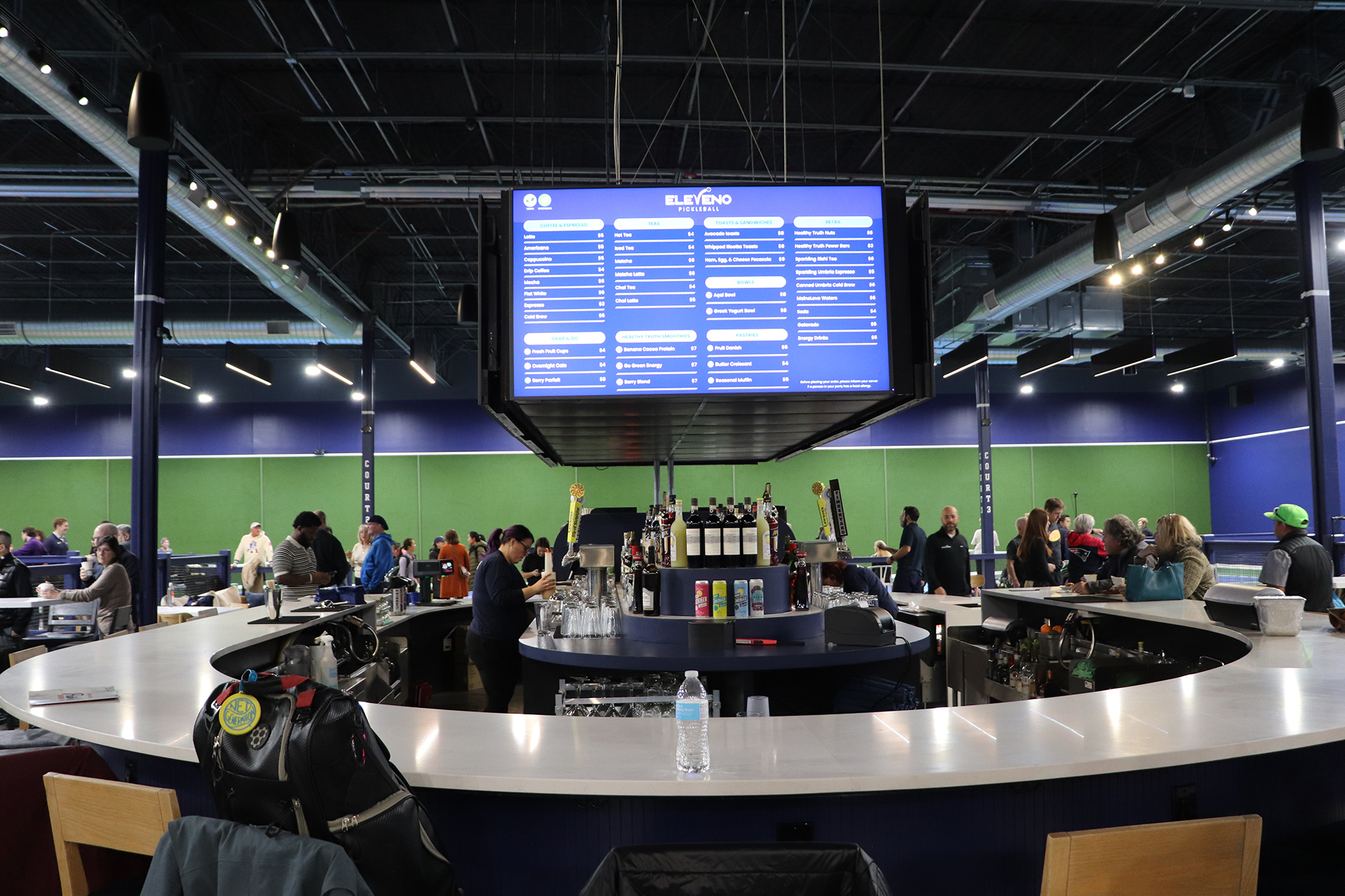 Featuring nine professional courts, a food & beverage concept, private event space, Pro Shop and courtside seating, this new indoor pickleball hub is complete with everything players of all ages and skillsets need to enjoy this fast-growing sport year-round. The facility also offers a full-service kitchen and quick-service options, with a curated menu designed for an “eatertainment” experience. The nine courts surround a center court café and bar with counter service, with each court also featuring a lounge with food & beverage access.
