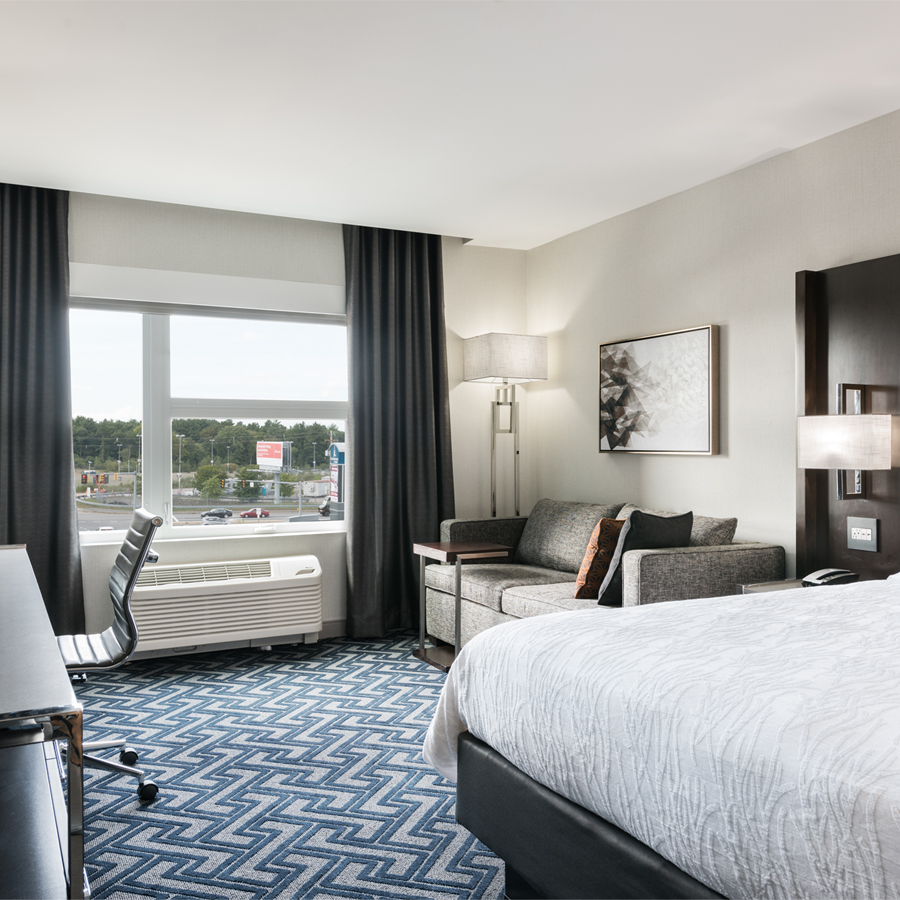 Each of our stylish guest rooms features a microwave, mini-fridge and 49-inch HDTV. Connect to complimentary WiFi and surf the internet from the comfort of your room. With a spacious work desk and ergonomic chair, you can easily stay up-to-date on business.