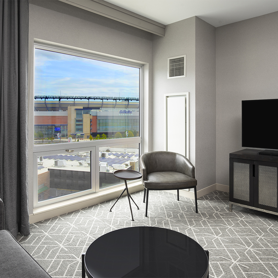 Located adjacent to Gillette Stadium, home of the six-time Super Bowl champion New England Patriots, Renaissance Boston Patriot Place Hotel is the only Four Diamond Rated hotel in Foxborough, centrally located between Boston and Providence. We are your bridge to discovering Patriot Place, featuring entertainment, shopping and dining. Our Boston area hotel offers a distinctive personality with dramatic panoramic views of the stadium. Expect unexpected delights with vibrant and warm touches throughout. Over 10,000 square feet of flexible meeting and event space encourages creativity and sparks the imagination. Outstanding catered cuisine with unique local flavors coupled with professional, anticipatory savvy service make memorable events. When seeking a Boston hotel or weekend getaway, you’ll find the Renaissance will offer an unforgettable experience while you embrace your journey.